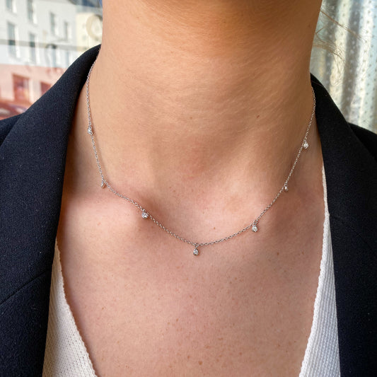 18ct White Gold Diamond Fringe Necklace | 0.17ct