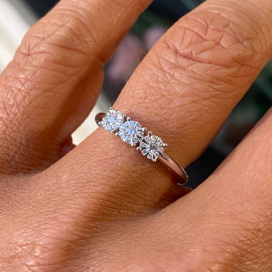 18ct White Gold Diamond Trilogy Cluster Engagement Ring | 0.16ct GVS