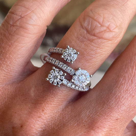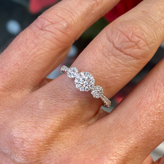 18ct White Gold Diamond Trilogy Cluster Engagement Ring | 0.57ct GVS