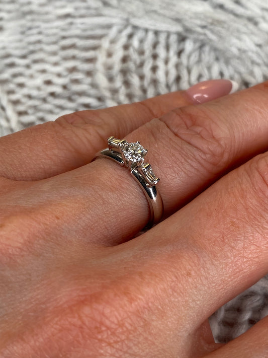 18ct White Gold Diamond Solitaire Engagement Ring with Baguette Shoulders 0.43ct