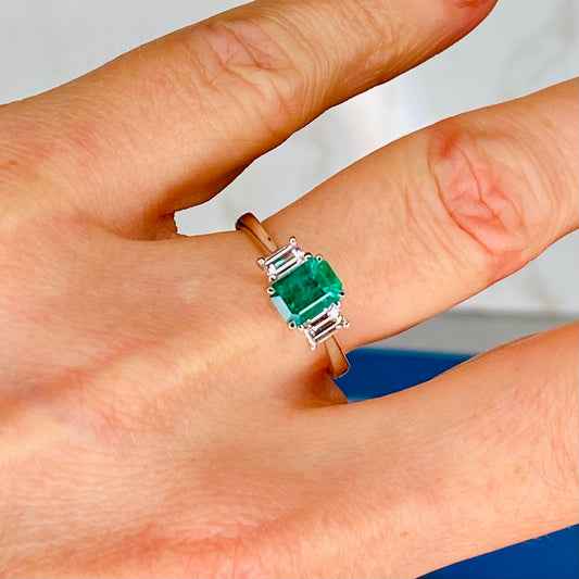 18ct White Gold Emerald & Diamond Trilogy Ring