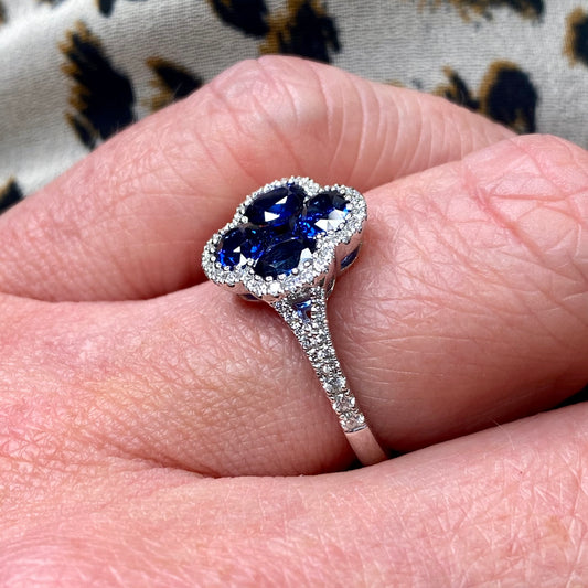 18ct White Gold Quatrefoil Sapphire & Diamond Ring