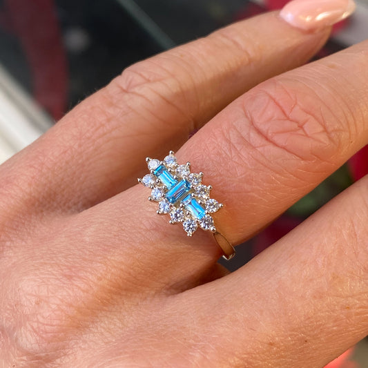 Sold out9ct Gold Blue Topaz & CZ Dress Ring