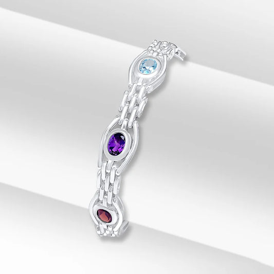 Silver Mixed Gemstone Gate Bracelet - 7.5"