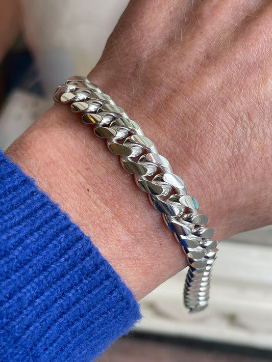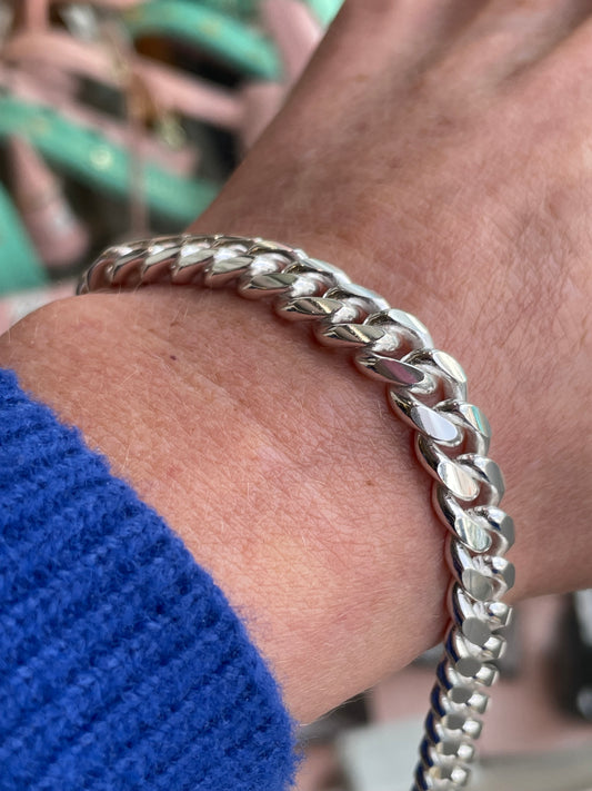 Silver Chunky Solid Curb Bracelet | 20cm
