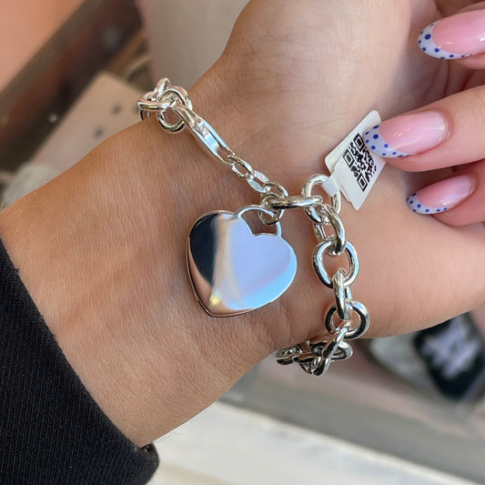 Silver Heart Disc Chunky Bracelet