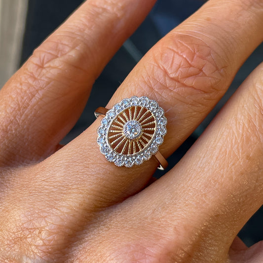 9ct Gold Oval Deco Diamond Ring | 0.30ct