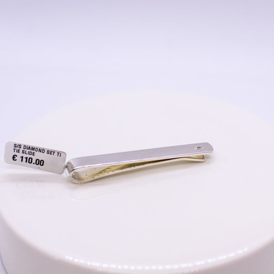 Silver Diamond Set Tie Bar