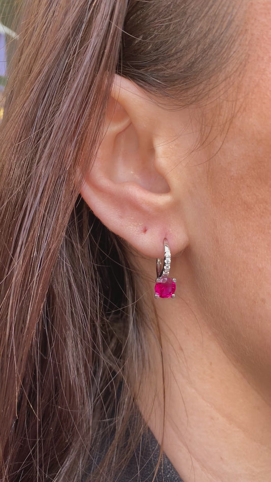 Silver Ruby Red CZ Hoop Earrings | German Wires