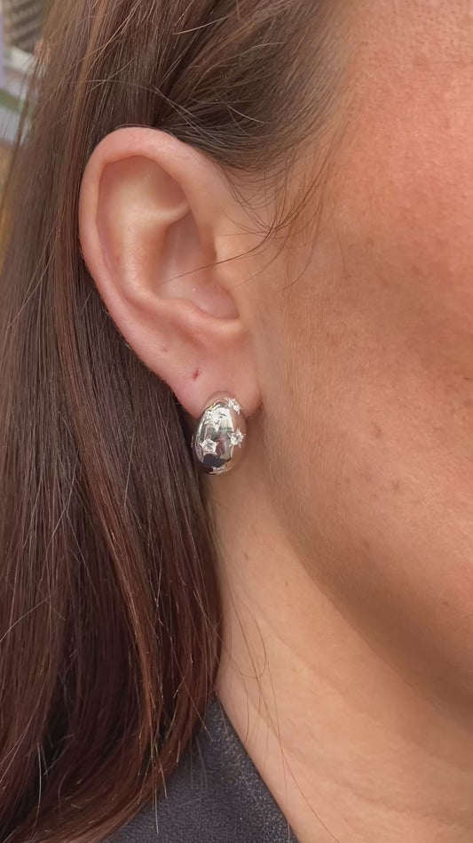 Silver Star Studded CZ Chunky Earrings | Clip Wire