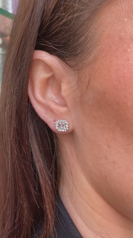 Silver Peacock Radiant CZ Stud Earrings | 7x9.5mm