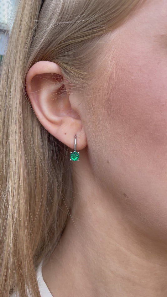 Silver 5.5mm Green CZ Hoop Earrings | German Wires