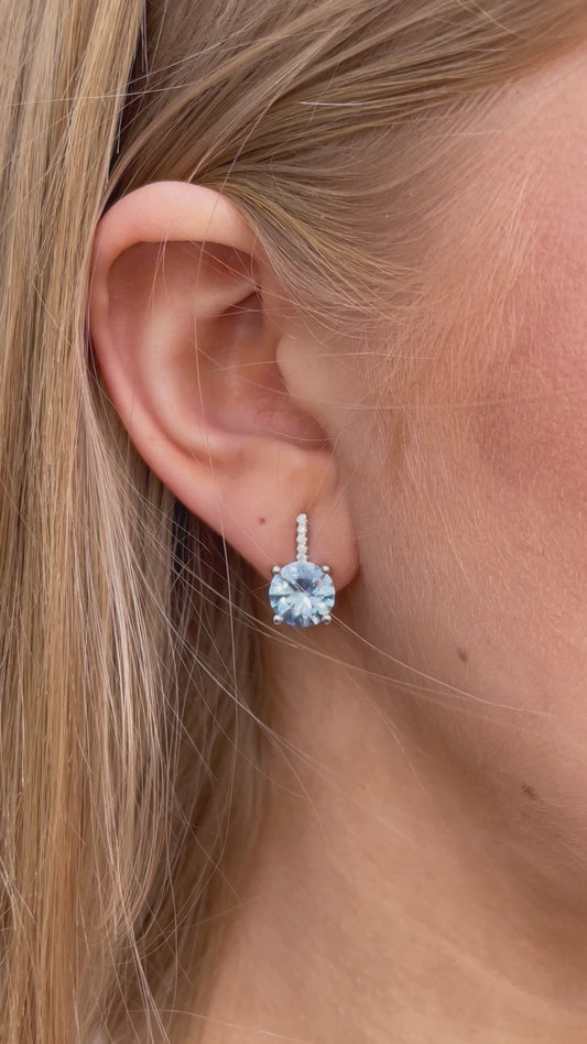 Silver Aqua Blue CZ Stud Earrings | Clip Wires