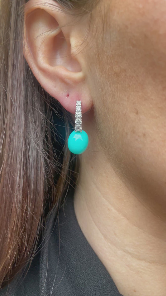 Silver CZ & 10x12mm Faux Turquoise Hoop Earrings