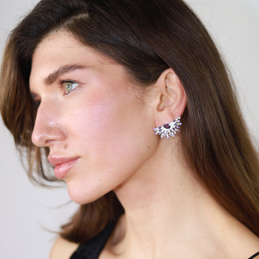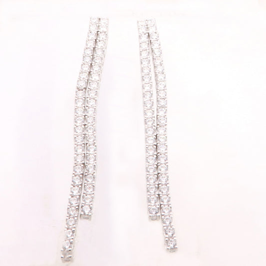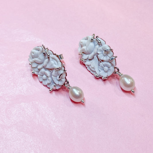 Silver Floral CZ & Golden Pearl Drop Earrings