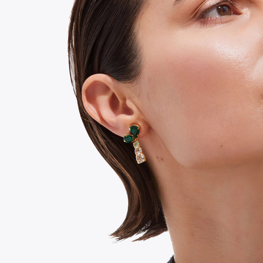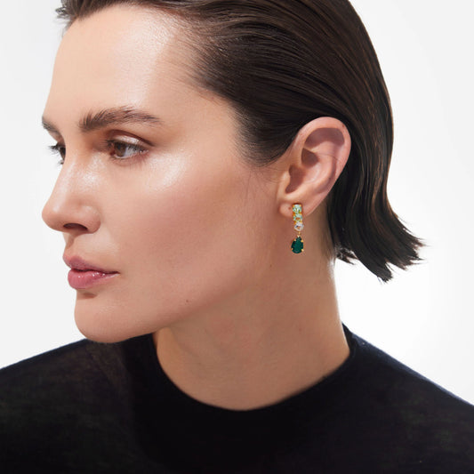 Silver Oval CZ Clip on Earrings | Emerald Green