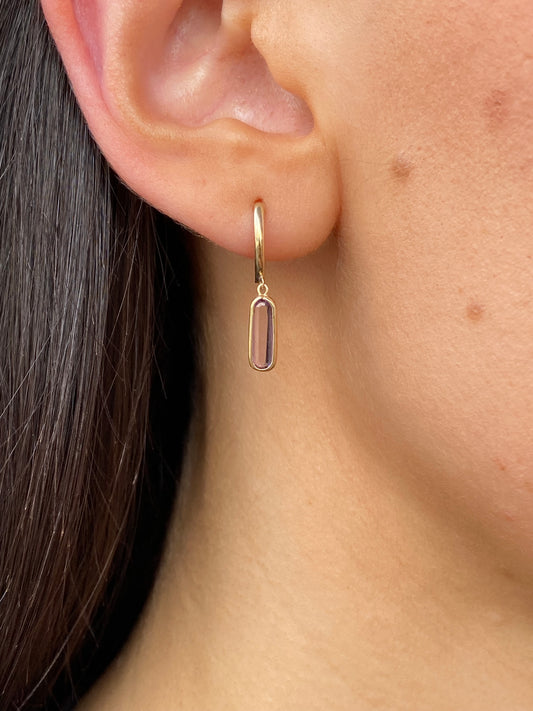9ct Gold Elongated Amethyst Drop Hoop Earrings