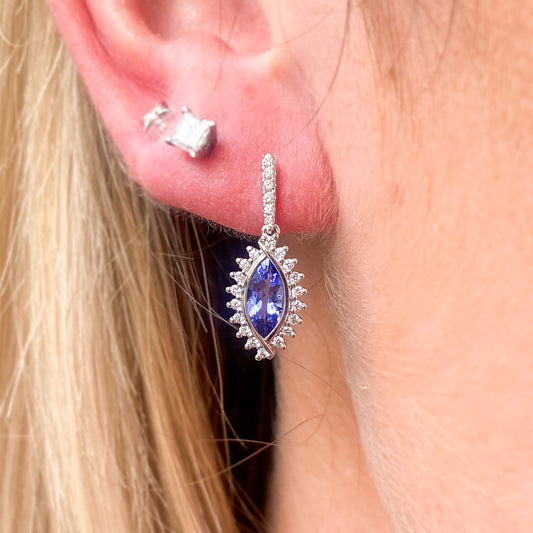 18ct White Gold Tanzanite & Diamond Drop Earrings | 0.40ct