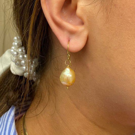 18ct Gold Golden Baroque Pearl Hook Drop Earrings