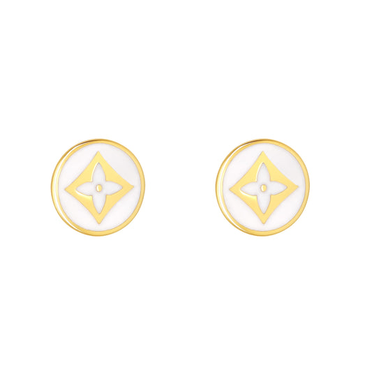 9ct Gold White Enamel Cross Stud Earrings | 8mm