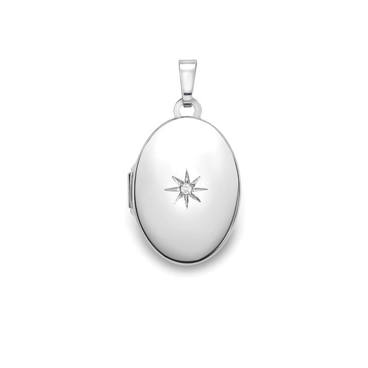 9ct White Gold Oval Diamond Set Locket & Chain