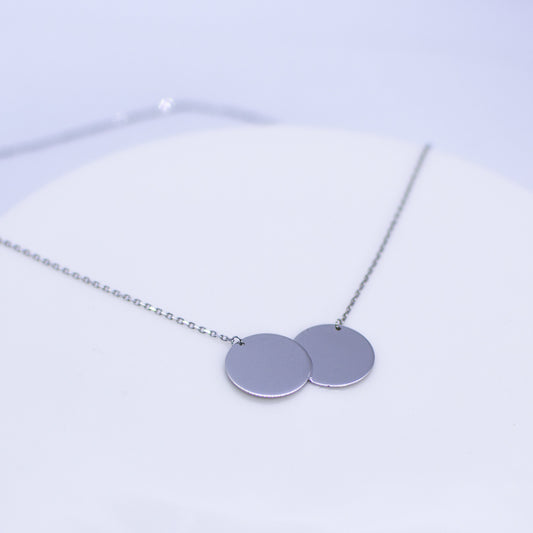 9ct White Gold Double Disc Necklace