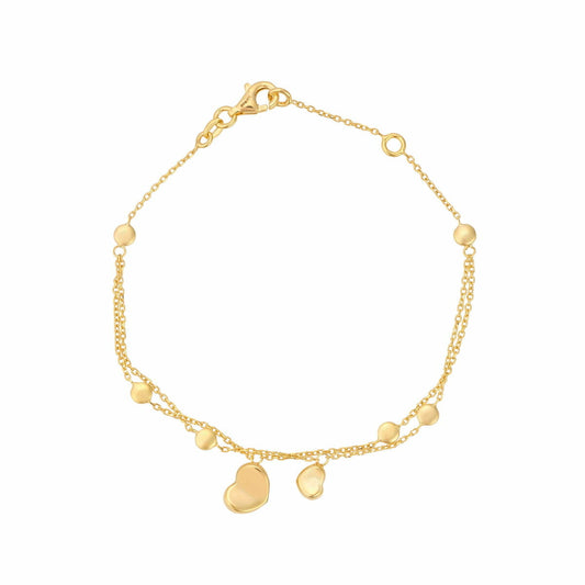 9ct Gold Double Bead & Heart Discs Station Bracelet
