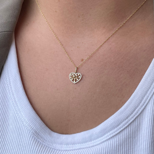 9ct Gold CZ Halo Tree of Life Necklace | 20mm