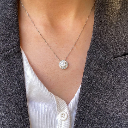 Silver Created Sapphire & CZ Square Double Halo Pendant Necklace