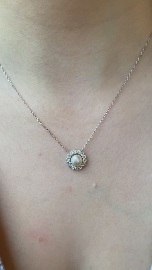 Silver 7mm Freshwater Pearl & CZ necklace | 42+3cm