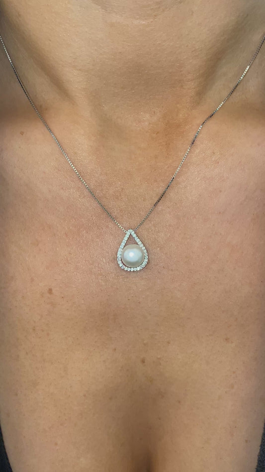Silver 10mm Freshwater Pearl & CZ Necklace | 42-3cm