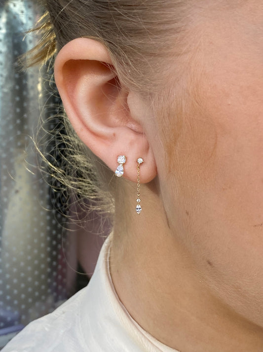 9ct Gold CZ & Pearl Chain Drop Earrings