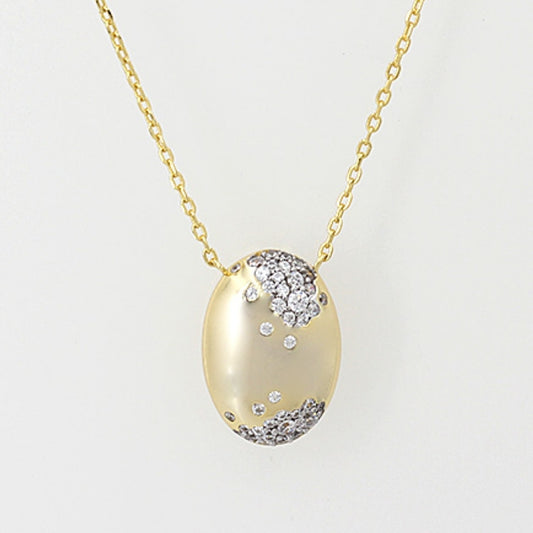 Sunshine Oval CZ Dotted Pendant Necklace | 40+5cm