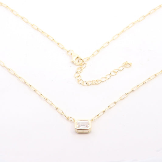 Sunshine Emerald Cut CZ Solitaire Necklace | 40+5cm