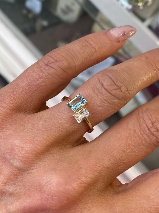 9ct Gold Moi Et Toi Ring - Blue Topaz & CZ