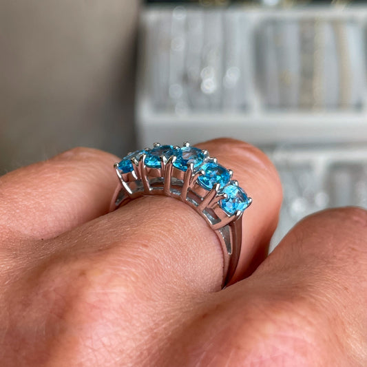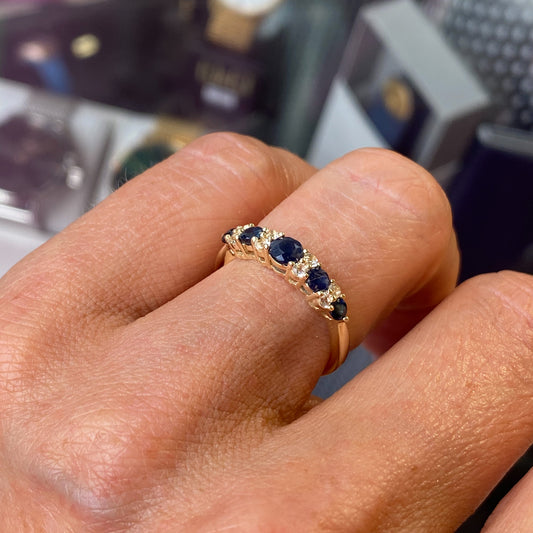 9ct Gold Graduated Eternity Ring - Sapphire & White Topaz