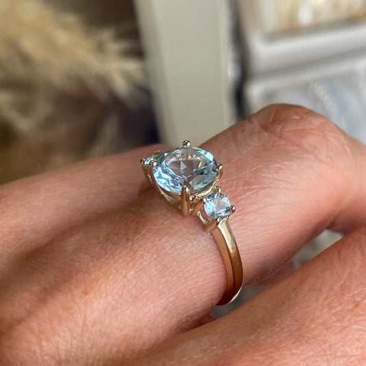 9ct Gold Trilogy Ring - Sky Blue Topaz
