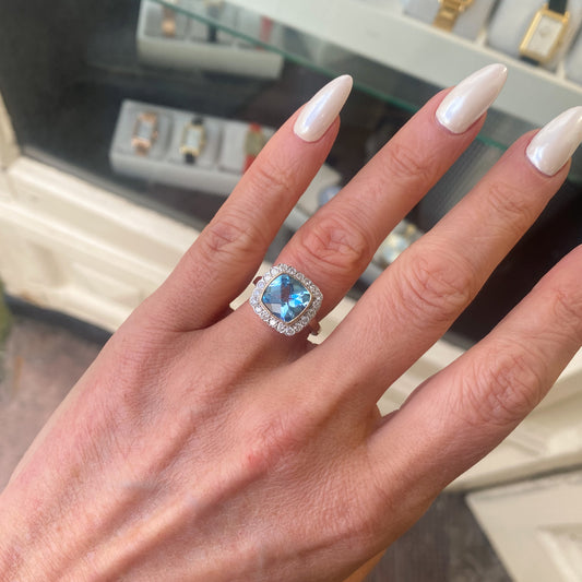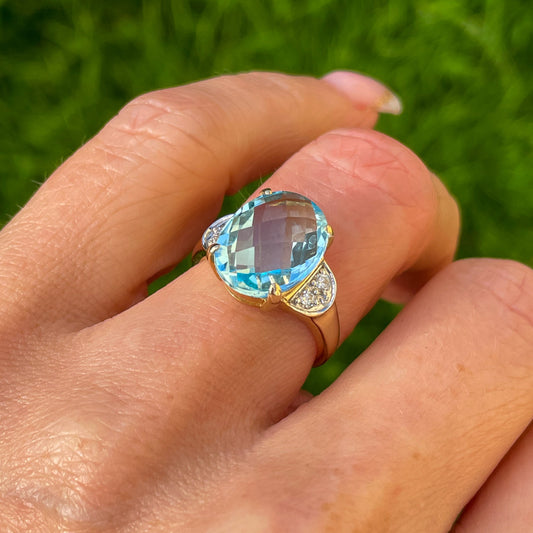 9ct Gold Blue Topaz & Diamond Cocktail Ring