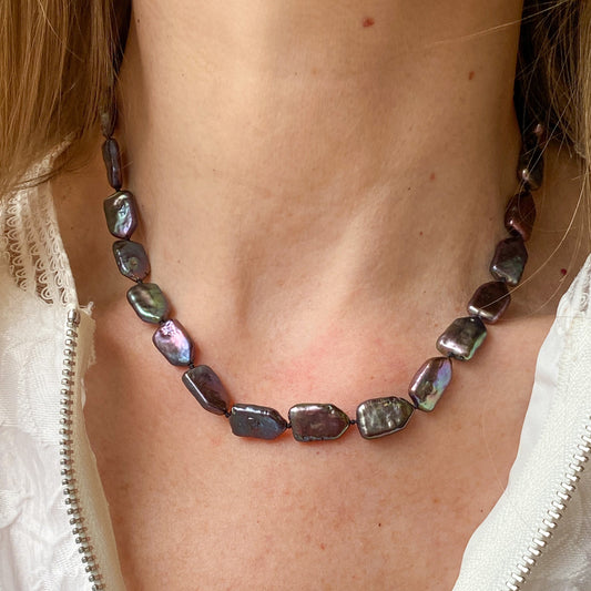 Silver Baroque Anthracite Freshwater Pearl Necklace