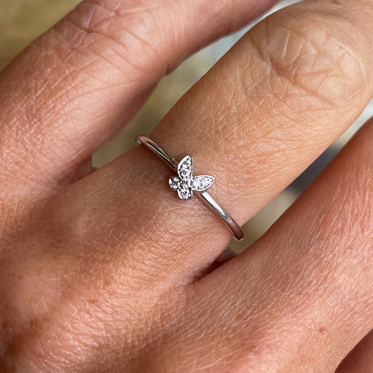 18ct White Gold Diamond Butterfly Ring | 0.03ct