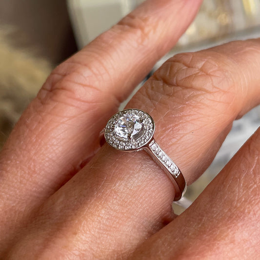 Silver C Flawless Halo CZ Ring