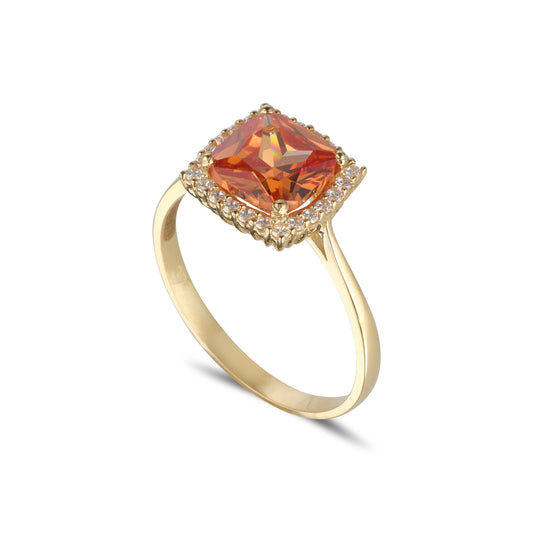 9ct Gold CZ Peach Square Cluster Ring
