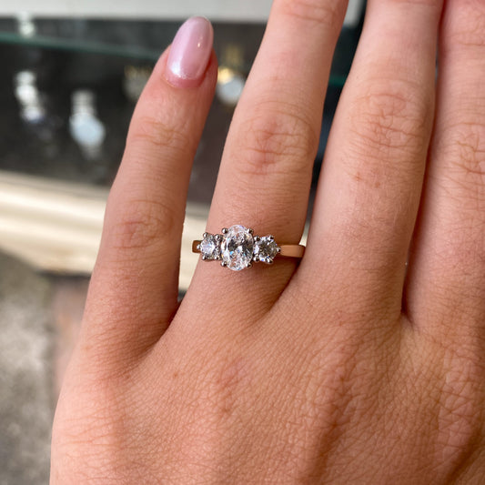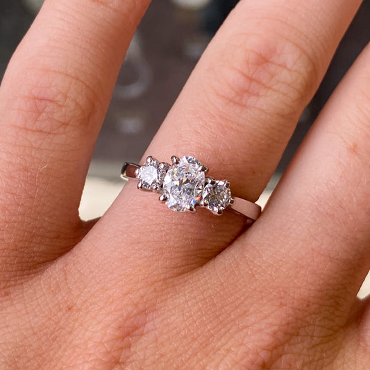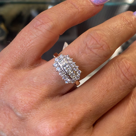 9ct White Gold CZ Trilogy Halo Ring with CZ Shoulders