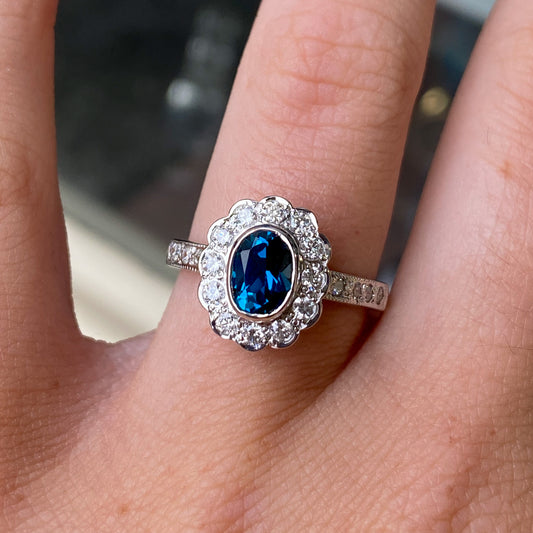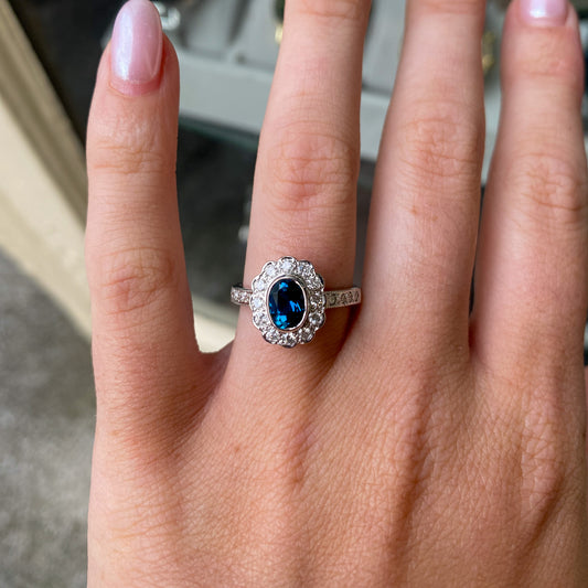 9ct Gold Oval Sapphire & Diamond Garland Ring
