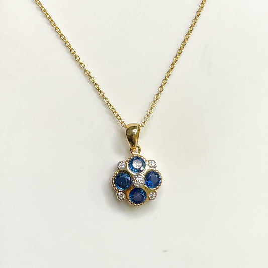 9ct Gold Sapphire & Diamond Quatrefoil Necklace
