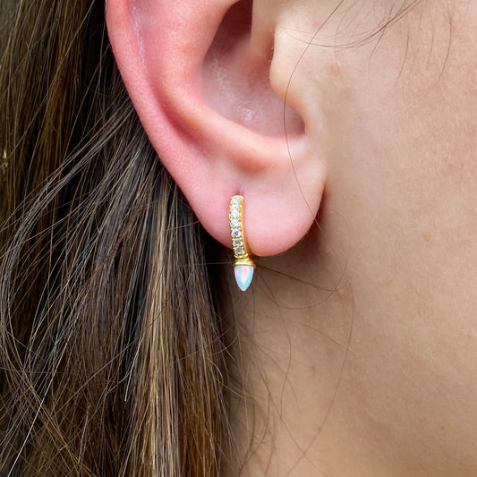 Ear Candy Opalique Bullet CZ Huggie Earring | Gold Plated