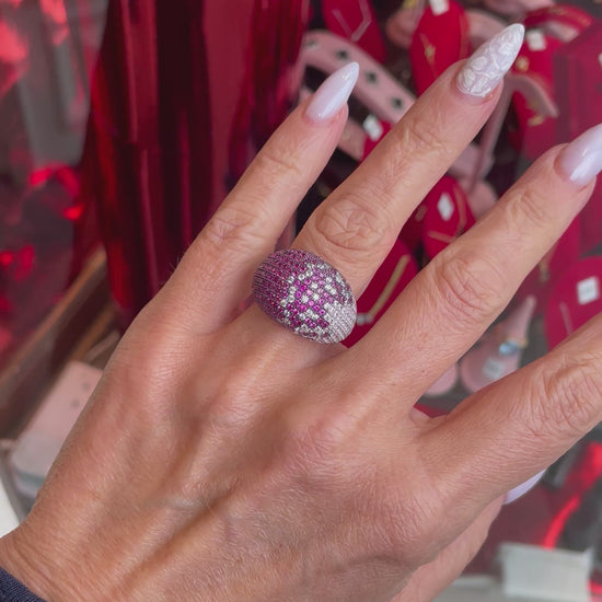 Silver Ombre CZ Statement Ring | Ruby Red | 925 Silver