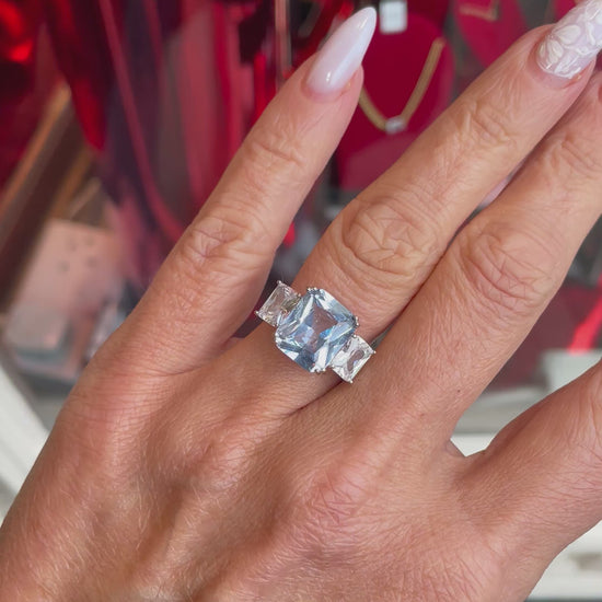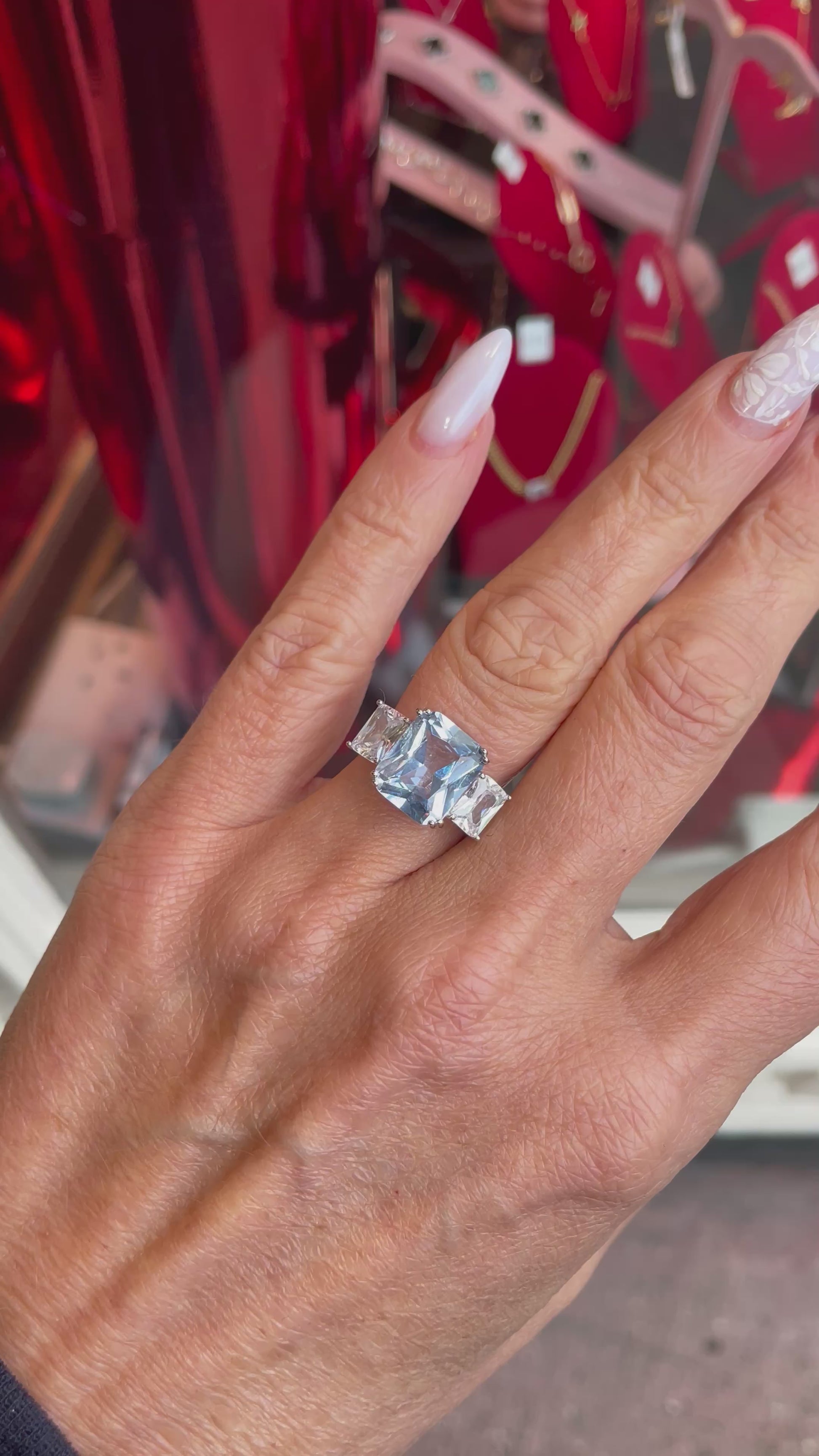 Silver Statement CZ Trilogy Ring | Aqua Blue
