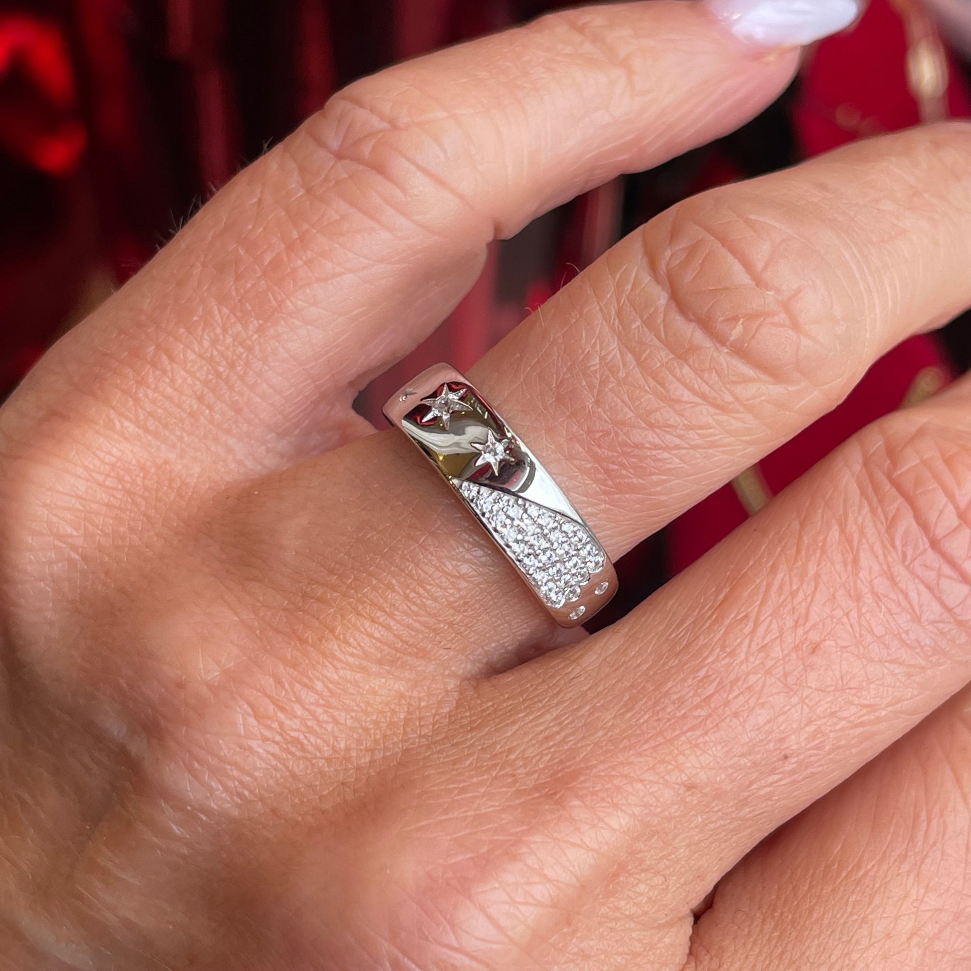 Silver Star Studded CZ Band Ring