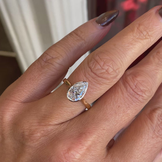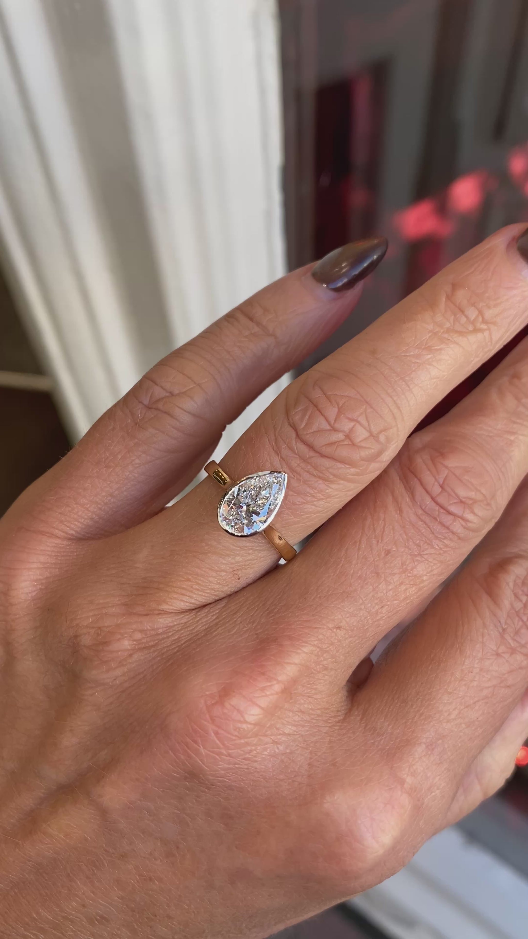 18ct Gold Bezel Set Solitaire Engagement Ring | 2.01ct Pear Lab Certificated